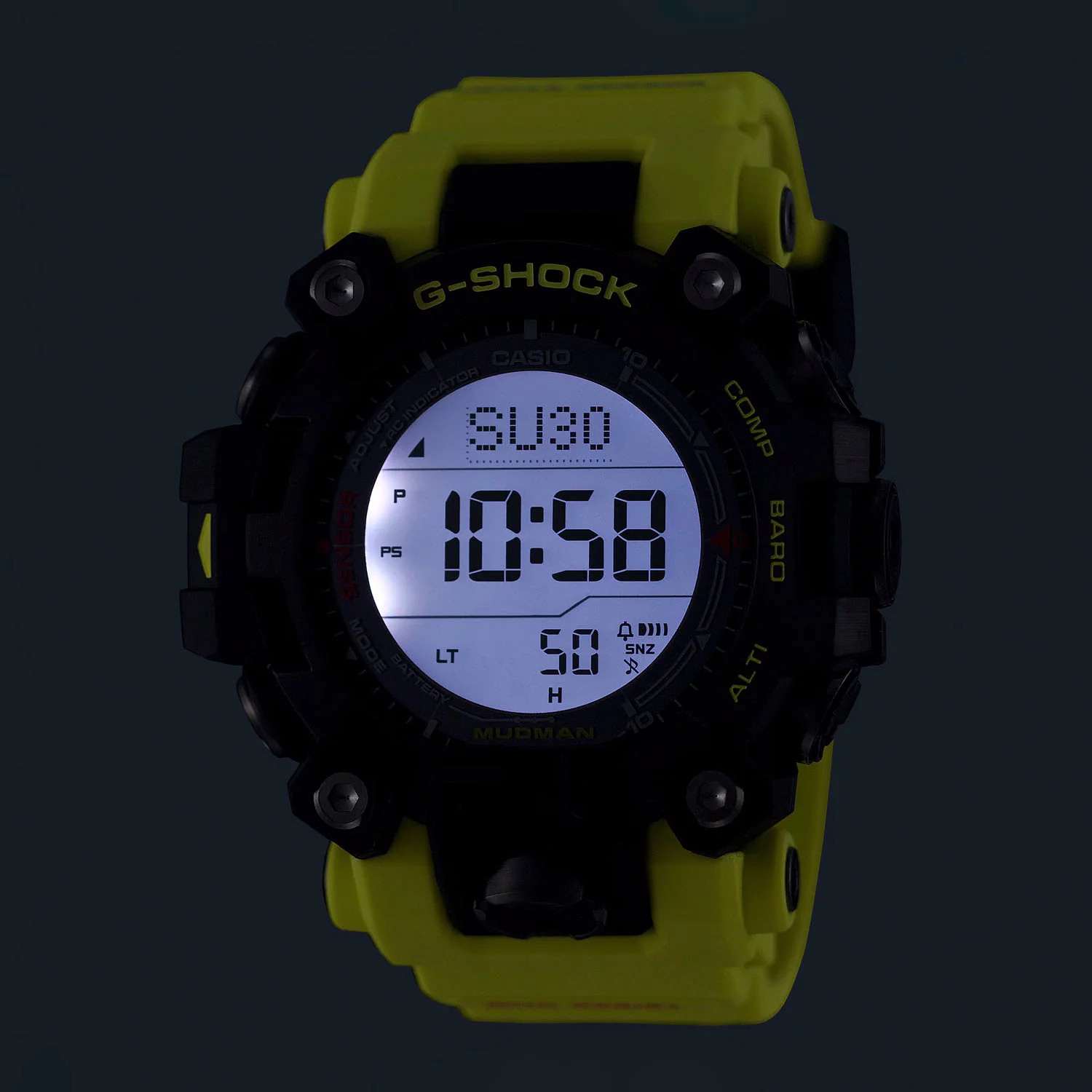 Wherever your journey takes you, the G-SHOCK Mudman Master of G – Land is built to endure. Designed for professionals who brave the toughest environments, this watch is engineered to deliver peak performance in the harshest conditions. The bold black case exudes durability, while the high-visibility yellow band—mirroring emergency rescue and safety signs—ensures it stands out when it matters most.